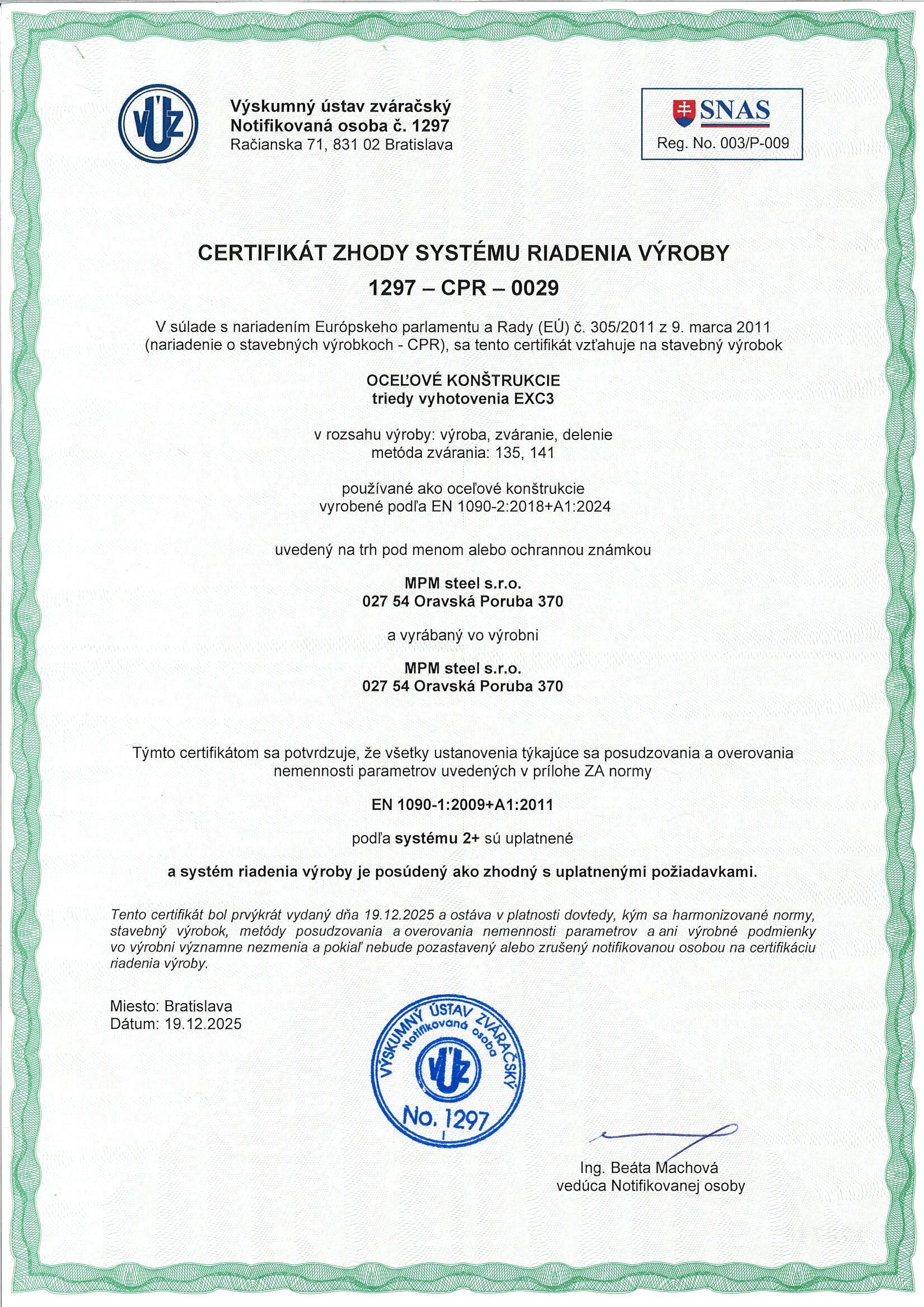 - V nasledujúcom rozsahu: Výroba a oprava strojov a zariadení. Inštalácia priemyselných strojov a prístrojov. Výroba a spracovanie kovov. Výroba oprava kovových konštrukcií.